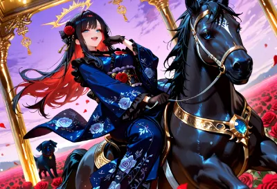 blush,smile,Happiness,Peaceful, flowers.soft wind,Fluttering petals,(Japanese anime style),(masterpiece), (best quality), (extremely detailed),(Perfect Face),woman, elf with black cat,Dream Pretty,The ends of the hair are spread out softly, bell collar choker, solo, woman alone,Blonde hair, Long Hair,Green Eyes,Beautiful breasts,ribbon,From the side