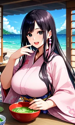ultra detailed, top quality, masterpiece, aesthetic, high-res, absurdness, 16k, score_9, score_8_up, score_7_up, beautiful face, beautiful eyes, cute eyes, shiny hair, (4fingers:0.7), 1girl, voluptuous body, large breasts, yukino, blonde hair, (pink highlights:0.8), up hair, short ponytail, purple eyes, <lora:yukino:0.6>, yellow kimono, hakama skirt, Japanese clothes, maid headdress, white apron, smile, hold tray, Japanese style restaurant, <lora:Wonderful_Details_XL_V1a:0.7>