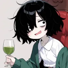 sitting on throne, crossed legs, holding wine glass, green tea in wine glass,