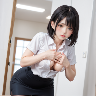 1female, solo,(Beautiful Japanese female:1.3),(tifa:0.7),white skin,brown eyes,(small eyes:1.5),(black hair:1.1),short hair,(straight heir:1.2), flowing hair,flat chest,(23yo:1.1),(large breasts:1.3),