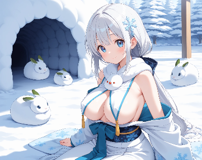 『雪うさぎ』のお題ですが,私が見た時は『雪うさぎ飾り』というお題でした。 なのでカフェとかの壁に雪うさぎと白雀ちゃんたちを再現した飾りを貼っている絵を作ったモノです。 いつの間にかお題が普通の『雪うさぎ』に変わってましたが,もう作り直すクレジット無かったので…。 (雪うさぎ『飾り』のお題だと柔軟性に欠けて作りにくいんだろうなと理解はできますが,『湯気のラーメン』に続いて2日連続でお題を微調整されたら,お題を見てすぐに作り始める側としてはたまらんのです)