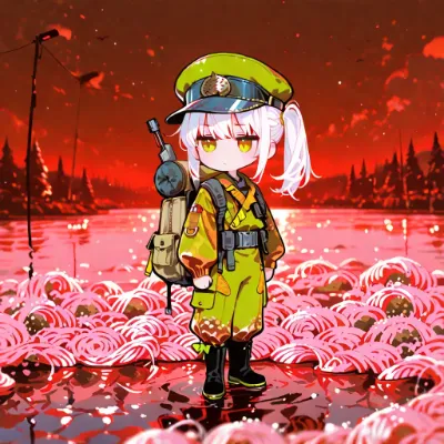 (dynamicangle),upperbody,(Eating ramen with red soup),(Hold chopsticks in one hand),(Aloha shirts), (sunglasses fogged up by steam),((blue-black puppy on head)),Seaside cafe ,palm trees,rose flower,(black hair,red inner hair:1.2),blush ,((Troubled face)),(Surprised expression),soft wind,