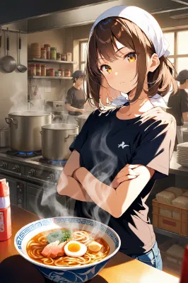 「むむ…これでは前が見えぬではないか!」 「チャーシューは~…これ~?」 「(*´ч` *)モグモグ……🌶️ではないか!からーいっ!?」
