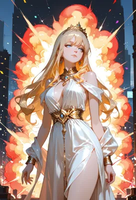 (masterpiece), (best quality), (extremely detailed), (anime), Rose hair ornament,((golden decoration)),1 woman,Devil, devils horns,solo,1 woman,a pretty woman, (longhair),blue eyes, beautiful breasts,fantasy,Looking at Viewer