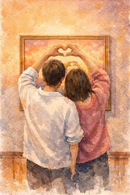 穏やかな夕暮れの花畑で、若い恋人たちは手を取り合って座っている。彼女の頰に優しい風が吹き、帽子がそっと揺れる。彼は静かに未来を語り、彼女は目を閉じて微笑む。この瞬間、二人は出会った日の記憶を振り返りながら、新たな冒険への誓いを交わす。遠くの山々が優しく見守る中、愛の物語が静かに紡がれていく。どんな試練が待っていても、この絆は永遠に続くのだろうか?