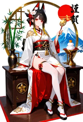 春の陽光が優しく降り注ぐ庭園で、双子の姉妹が華やかな浴衣に身を包み、穏やかな茶会を楽しむ。黄色い浴衣の姉が丁寧にお茶を点て、赤い浴衣の妹がうちわで風を起こす。桜の花びらが舞う中、二人は幼い頃の思い出を語り合い、静かな午後のひと時を共有する。やがて訪れる夕暮れが、二人の絆をより深く結ぶのかもしれない。 「お茶をどうぞ、ほっと一息ついてね♪」と優しく微笑みながらお茶を注ぐ橙色の着物を着た少女。一方、赤い着物の姉妹は団扇を優雅に仰ぎ、「秋の風が心地いいわね」と穏やかに呟く。伝統的な装いの中で、穏やかで温かな雰囲気を醸し出す双子。