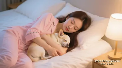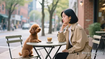 A cute 28-years-old Japanese woman. She sits on the grass in a spacious park with her brown miniature dachshund. Her long, wind-swept hair is tied up in a ponytail, and she flashes a joyous smile. She is wearing a white T-shirt and denim shorts, giving the image a casual look. The miniature dachshund has its paws resting on the woman's lap, happily trying to lick her face. The woman tries to avoid it, but she is smiling with genuine enjoyment. The low-angle shot highlights the playfulness of the pair against the backdrop of the expansive lawn and tall trees in the distance. The overall bright and airy tone of the image conveys the joy that can be found through innocent play with a dog, and the simple happiness of everyday life.
