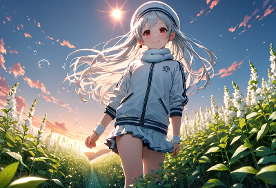 丘の上で、赤いベレー帽をかぶった白髪のエルフ姉妹が、夕陽に照らされながら一枚の紙に夢をスケッチする。姉は未来の冒険を、妹は秘密の宝物を描き加え、二人で笑い合う。街並みが広がる景色の下で、彼女たちの日常は小さな魔法のような瞬間。やがて、この地図が導く未知の旅が始まるのかもしれない。読み手は、彼女たちの絆と希望に心を奪われるだろう。