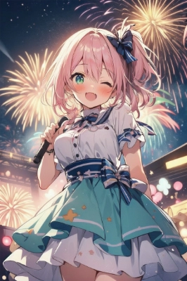 ((masterpiece)), ((best quality)), (ultra-detailed), ((extremely detailed)), 4K, (8K), best quality, (beautiful), illustration, watercolor, dynamic angle, walking, forest, daytime, a cute girl, 1girl, solo, (mountaineering gear), beautiful pink hair, beautiful green eyes, ((beautiful eyes)), ponytail, smile, wind effect, shiny