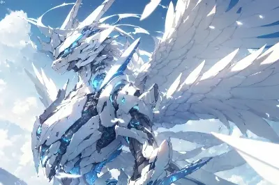 (masterpiece, best quality, great, highly detailed CG unity 8k wallpaper, depth of field, super fine illustration:1.5), illustration, CG, 3D, extremely detailed, (a mech girl:1.3), sci-fi battlefield, looking back, hawken, smile, open mouth, long hair, (light-blue hair, purple eyes:1.2), sparkling eyes, cute face, kawaii, large breasts, delicate hair, disheveled hair, floating hair, shiny hair, shiny skin, blue sky, white clouds, white wings, headgear, white hair ornament, (particles of light, cinematic lighting: 1.3), (light pink lips: 0.8),