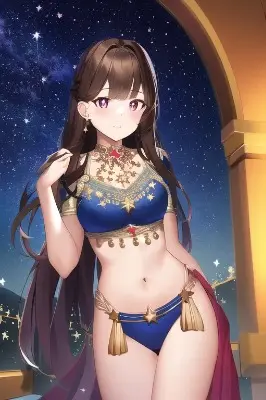 masterpiece, best quality, ((solo:1.2)),1girl,watercolor style,fantasy setting,fusion of Japanese armor and blue bikini armor in front of navel,midriff,navel cut out,thigh-high boots,black hair,ponytail,hair ornament,age:young adult,golden eyes,serious expression,large breasts,sword,katana,red ribbon,leather gloves,standing pose,side view,dynamic pose,castle background,full moon,night sky,lanterns,enchanted atmosphere,grassy field,stone path,sakura petals,battle stance.