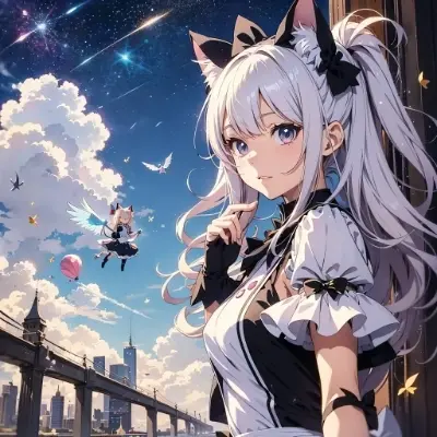 Magical Girl Anime Mahou Girl、moumagical girl、Anime Loli、portrait of the magical girl、Very beautiful anime girl、Anime girl named Lucy、Alicization、Detailed key anime art、style of magical girl、Black Magician Girl、Magical world、Light blonde hair、depth offield,Girl Emitting Cure Light from a magic cane with a blue star at the tip、Dynamic angles、Medium hair、Hanging Girl、ribbon from