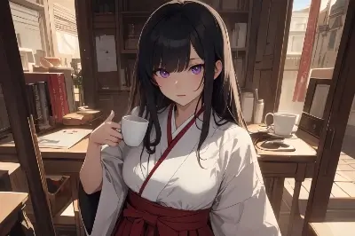 (Have a broom), BREAK, masterpiece, best quality, ultra-detailed, high resolution, extremely detailed CG, textile shading, perfect anatomy, beautiful detailed fingers, beautiful detailed eyes, unity 8k wallpaper, 8k, detailed, 1woman, solo, shrine maiden, hakama skirt, a scarlet skirt, BREAK, black hair, purple eyes, long hair, hair over one eye, floating hair, outdoors, wind,