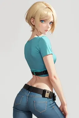 (best quality), (anime style:1.2), (high quality),(1lady:1.3), (26yars old:1.3), silver short hair, amber eyes, tank top, denim hot pants, (dark skin:1.5), toned, (large bust),