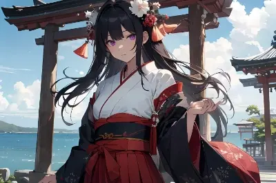 Eating shaved ice, sitting on, BREAK, masterpiece, best quality, ultra-detailed, high resolution, extremely detailed CG, textile shading, perfect anatomy, beautiful detailed fingers, beautiful detailed eyes, unity 8k wallpaper, 8k, detailed, 1woman, solo, shrine maiden, hakama skirt, a scarlet skirt, :o,