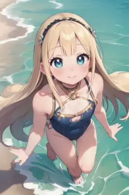 Loving viewer very much,dating on beach,wearing cute swimsuit,clinging to viewer\'s arm,looking down from above,looking at viewer,smiling shyly,blushing,ocean in background,blonde beauty,20 years old,full body,beautiful face,(symmetrical clear eyes:1.3),gold eyes,flower-shaped pupils,long eyelashes,double eyelids,detailed long hair,bangs,detailed fingers,realistic face,realistic body,small-chest,(super fine illustration:1.3),masterpiece,super high resolution,extremely delicate and beautiful,Amazing,finely detail,extremely detailed CG unity 8k wallpaper,absurdres,depth of field,far from viewer,cinematic angle,beautiful detailed background