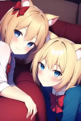 masterpiece,bestquality,2girls_A_and_B,Agril_have_blondehair_{{{hairbow}}}_{{{redbow}}}_shorthair_blueeyes_{{{{flatchest}}}}_{{schooluniform}},{masterpiece},{extremelydetailed},highlydetailed,Bgirl_have_normalbreasts_longblackhair_eyewear_{{{blackeyes}}}_{schooluniform},library,sittingonchair,reading