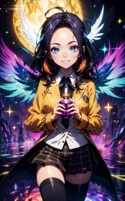 <lora:flat2:-0.8>, <lora:noline:0.2>, (insanely detailed:1.5), (high quality:1.5), ultra-detailed, best quality, incredibly absurdres, unreal engine, unity 8k, sense of depth, super fine illustration, 8k wallpaper, (photo background:1.3), beautiful, from below, (vivid:1.4), colorful lighting, breathtaking beauty, breathtaking art, (anime style:1.3), reflection, incredible art, perfect light reflection