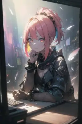 realistic, super photo realistic illustration, highres, ultla detailed, absurdres,best quality, (masterpiece:1.5),(ultra-detailed), (high quality:1.3),(high resolution),best quality ((masterpiece, best quality, detailed)), (sense of depth:1.5)ultra-detailed, hard rim lighting,((dramatic lighting)),sharp focus,BREAK(colorful:1.5), blooming light effect,kaleidoscopic views,natural lenses,particle,colorful refraction,BREAK((maximalism:1.5), vivid contrast,interconnectedness of nature,distorted reality,suspended moments,ephemeral glimpsesBREAK(one girl (coming out :1.5) (of giant computer screen on desk:1.5), Faces and hands that (extend beyond the screen frame), front view, looking at viewer, upper body), smile,((kawaii girl)), (loli:1.3),solo, one girl,(random hair color),(glowing random eye color),((short hair) or (ponytail) or (twin tail)),steampunk,worried, scared,shoes,dress oneself stylishly,delicate clothes wrinkles,medium breast,(war:1.4),(glowing eyes:1.1),dirty,wakame:1.5),