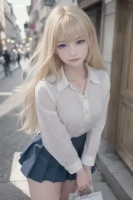 Loving viewer very much,eating cream puffs,wearing school uniform,peeking from side,looking at viewer,smiling shyly,blushing,shopping street at dusk in the background,blonde beauty,20 years old,full body,beautiful face,(symmetrical clear eyes:1.3),gold eyes,flower-shaped pupils,long eyelashes,double eyelids,detailed long hair,bangs,detailed fingers,realistic face,realistic body,small-chest,(RAW photo,best quality),(realistic,photo-realistic:1.3),masterpiece,super high resolution,extremely delicate and beautiful,Amazing,finely detail,extremely detailed CG unity 8k wallpaper,absurdres,depth of field,far from viewer,cinematic angle,beautiful detailed background