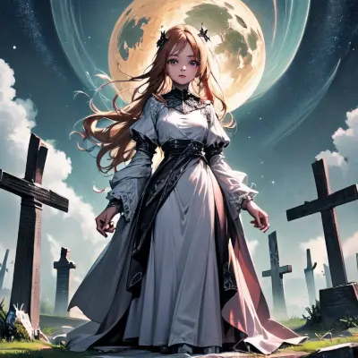 (exceptional, best aesthetic, new, newest, best quality, masterpiece, extremely detailed:1.2), moon, fantasy, magic, cemetery