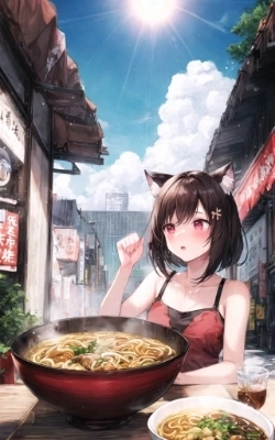 (benitoite),shaved ice, kakigori,Granizado,fruits sorbet, (South China ),cat ear,scenic,iridescent,000quality4N,iridescence,1girl,,indoor <lora:flat2:0.1><lora:flatBG:-0.2><lora:saturation:0.15> あじさい,,radial,,brilliant<lora:agomaru:1>,(ry),moody , scenery, summer, holding spoon, cat,
