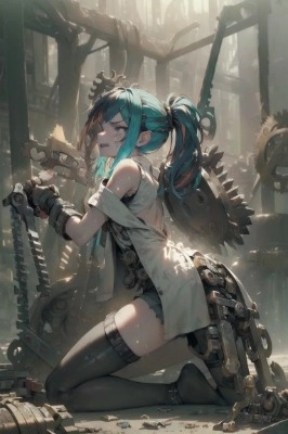 realistic, super photo realistic illustration, highres, ultla detailed, absurdres,best quality, (masterpiece:1.5),(ultra-detailed), (high quality:1.3),(high resolution),best quality ((masterpiece, best quality, detailed)), (sense of depth:1.5)ultra-detailed, hard rim lighting,((dramatic lighting)),sharp focus,BREAK(colorful:1.5), blooming light effect,kaleidoscopic views,natural lenses,particle,colorful refraction,BREAK(steampunk:1.5),cyber punk,dust effect,BREAK((maximalism:1.5), vivid contrast,interconnectedness of nature,distorted reality,suspended moments,ephemeral glimpsesBREAKput one hand on the waist,the index finger,the fingerBREAKcarry a big backpack,(mechanical backpack:1.3),((White steam from backpack)),(a lot of steam leaks),wearing goggles,(goggles:1.3),((smug),((smirk)),(((white labcoat:1.5)),leather gloves, newsboy cap,jet cap,protector),looking at viewer,(commoner:1.5),blacksmith,((indoor)),fantasy worldBREAK((kawaii girl)), (loli:1.3),solo, one girl,(two tone hair,Turquoise green hair,black multicolored hair:1.3,multicolored hair),(random eye color),(Short ponytail,Swept bangs),hairclip,key pendant,zipper,shoes,dress oneself stylishly,upskirt,T-shirt,shorts trousers,mini skirt,(thigh-highs),delicate clothes wri nkles,medium breast,eyeliner,(zettai ryouiki),wakame