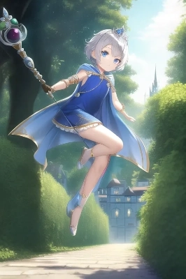 masterpiece, best quality, starry sky , precious heroine is gracefully dancing ballet on lake, the little sturdy magical girl , clear silver inward curl short hairs , a miracle staff in hand , short sleeve beautiful indigo dress with embroidery, short skirt , fair skin, cute detailed eyes , opera groves , cool , cute , pretty, kawaii, child , cinematic light , amazing, {{full body}} , elegant long greaves , armlets, miracle jewel, short cloak , princess tiara, elaborately painted, {{{best quality }}}, {{{best detailed}}} , {{masterpiece}}