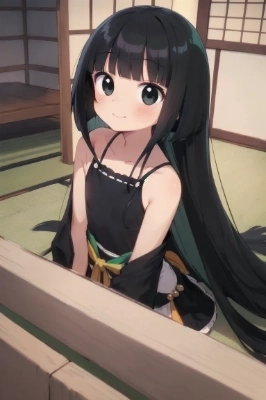 (((best quality))), ((ultra-detailed)), (illustration), (detailed light),extremely best quality, high resolution, black hair, smile, (((Long Hair))),straight Hair,hair ribbon,mintgreen stripe,Black Eyes,flat chest,straight Across bangs,princess Cut, Very Long Sideburn,roundry Head,Droping eyes,1 Girl,cute,Meekness,Bob Cut,long back hair,12 years Old,loli,flower print,lift up,courtesy,stand up,sightviewing,museum