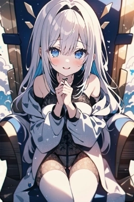 solo girl, thumbs up, 17 years old, (white twintail hear:1.0), blue eyes, looking at viewer, happy, smile, blush, (separated lips, open mouth), (white oversized_camisole:1.1), cleavage, shoulder, (large breasts:1.1), white lace panties, full moon night, dutch angle:1.2,