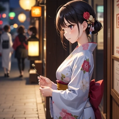 Focus with your sight, change your sight, Red beer, elbows on the table, light green summer kimono, upper body-focused composition, black hair, red eyes, glowing eyes, night, A crimson moon, serious, BREAK, best quality, detailed face and eyes, perfect anatomy,