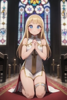 教会で祈りを捧げる金色の髪の少女
