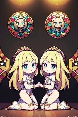 教会で祈りを捧げる金色の髪の姉妹