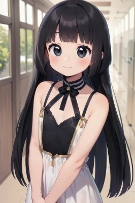(((best quality))), ((ultra-detailed)), (illustration), (detailed light),extremely best quality, high resolution, black hair, smile, (((Long Hair))),straight Hair,hair ribbon,mintgreen stripe,Black Eyes,flat chest,straight Across bangs,princess Cut, Very Long Sideburn,roundry Head,Droping eyes,1 Girl,cute,Meekness,Bob Cut,long back hair,12 years Old,loli,flower print,lift up,courtesy,stand up,sightviewing,library