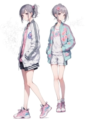(white background:1.3), (extremely detailed fine touch:1.3), ///, kawaii girl, short hair, (full body:1.3), flower, zentangle, hands in pocket, (oversized jacket:1.3), (sneakers:1.3), (art nouveau:1.3), (HDR),(glitch art:1.6),(dynamic angle:1.3),(cowboy shot:1.2),mosaic,(Blur)