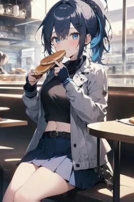 (extraordinary, best aesthetics, new, best quality, highly detailed), age 17, female, show bob, silver hair, blue eyes, (she is holding a plate of tangerine cake with a smile ), she is wearing a school uniform.
