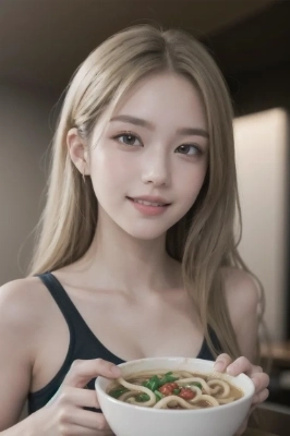 Loving viewer very much,eating curry udon at a diner,wearing casual clothes,offering a bowl of curry udon to the viewer,looking up from below,looking at viewer,smiling happily,blushing,popular diner,blonde beauty,20 years old,full body,beautiful face,(symmetrical clear eyes:1.3),gold eyes,flower-shaped pupils,long eyelashes,double eyelids,detailed long hair,bangs,detailed fingers,realistic face,realistic body,small-chest,(RAW photo,best quality),(realistic,photo-realistic:1.3),masterpiece,super high resolution,extremely delicate and beautiful,Amazing,finely detail,extremely detailed CG unity 8k wallpaper,absurdres,depth of field,far from viewer,cinematic angle,beautiful detailed background