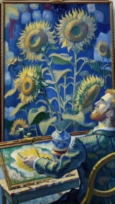 masterpiece, official art, ultra detailed, beautiful and aesthetic, (oil painting), A quiet japanese simple tea room in the summer sun, [close-up] (((foreground))) (blurry) A (single) [[sunflower]], [tea utensils], girl, ((Seiza tea master)), simple green Japanese clothes, (Wabi-Sabi:1.5), Japanese sensitive sense of beauty <lora:ARWJapanInterior:0.8>