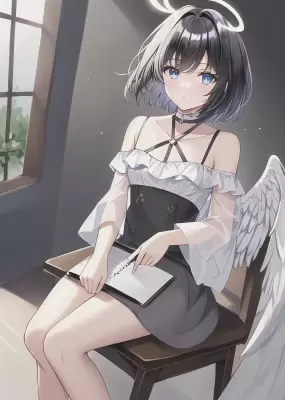 (panorama:1.1),blurry, blurry_background, blurry_foreground, blush, solo_focus, vivid,chroma,depth of field,1girl,focused, motion_blur, out_of_frame, pov, ring,left hand_on_own_chest,modern,small breasts,(night:1.3),city,sea,jacket off shoulder,pants,hairband,(propose:1.3),(happy:1.3),(water eyes:1.3),(excitement:1.1),(tears:1.1),female, mature,(30 years old:1.3), short hair, shiny hair, (black_hair:1.2), blue_eyes, halo,(white angel wing:1.4),(wedding_band:1.2), upper body,