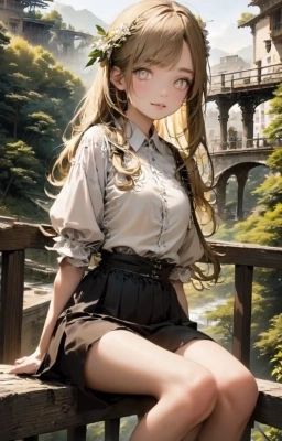 遺跡を散策する金色の髪の少女