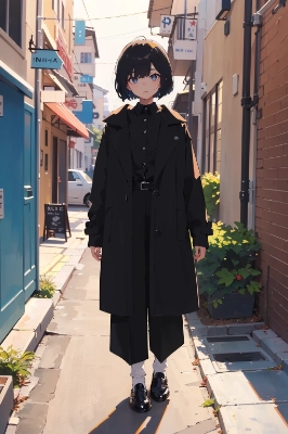 (best quality:1.1), (masterpiece:1.4), (absurdres:1.0), 1girl, solo, black hair, ponytail, small eyes, (slanted eyes:1.3), white sundress, (see-through silhouette), wind, looking at viewer, outdoors, tokyo, alley, early evening, cloud, backlighting, from side, <lyco:flat2:1.0>
