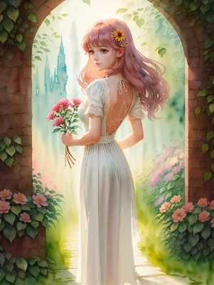 サマードレスですぐ思い浮かんだのが綺麗な背中でした。 チョットフェチっぽいけど。 また水彩画風に描けるloraのIrisCompietStyleを使ってみました。 之は素晴らしかったです。 トンネル構図も狙ってみました。