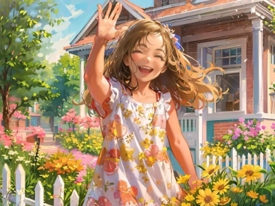 masterpiece,beste-Qualit,highly detaile,8k,black hair,blue eyes,cute girl,solo,short hair,anime,fantasy,castle and town,castle town,beautiful building,how people live,flowers, trees, nature,romantic,shopping street,street stall,blue sky,zoom up,(Surrounded by flowers:1.5),florist shop