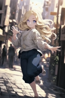 Hello!,waving hello,wearing casual clothes,peeking out from the side,looking at viewer,fresh smile,morning street corner,blonde beauty,20 years old,full body,beautiful face,(symmetrical clear eyes:1.3),gold eyes,flower-shaped pupils,long eyelashes,double eyelids,detailed long hair,bangs,detailed fingers,realistic face,realistic body,small-chest,(super fine illustration:1.3),masterpiece,super high resolution,extremely delicate and beautiful,Amazing,finely detail,extremely detailed CG unity 8k wallpaper,absurdres,depth of field,far from viewer,cinematic angle,beautiful detailed background