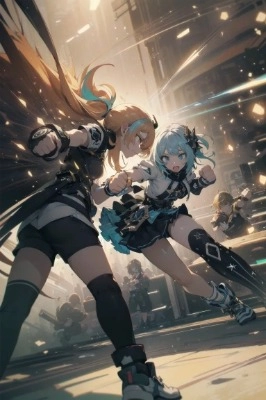 realistic, super photo realistic illustration, highres, ultla detailed, absurdres,(masterpiece:1.5),(ultra-detailed), (high quality:1.3),(high resolution),((best quality)), (sense of depth:1.5), hard rim lighting,((dramatic lighting)),sharp focus,BREAKfull body,(Street Fight),((Hadouken:1.5)),((Hadouken:1.5)),((Kamehameha wave)),((fighting stance:1.5)),(attacking:1.5),(vigorous movement:1.5),BREAK((kawaii girl)), (loli:1.3),solo, one girl,(random hair color),(random eye color),(random hairstyles),shoes,dress oneself stylishly,upskirt,T-shirt,shorts trousers,mini skirt,(black thigh-highs),delicate clothes wrinkles,medium breast,eyeliner,(zettai ryouiki),wakameBREAK(colorful:1.5), blooming light effect,kaleidoscopic views,natural lenses,particle,colorful refraction,BREAKdynamic angle,cyber punk,mythpunk,nanopunk,Raypunk,SteelpunkBREAK((maximalism:1.5), vivid contrast,interconnectedness of nature,distorted reality,suspended moments,ephemeral glimpses