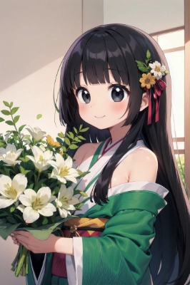 (((best quality))), ((ultra-detailed)), (illustration), (detailed light),extremely best quality, high resolution, black hair, smile, (((Long Hair))),straight Hair,hair ribbon,mintgreen stripe,Black Eyes,flat chest,straight Across bangs,princess Cut, Very Long Sideburn,roundry Head,Droping eyes,1 Girl,cute,Meekness,Bob Cut,long back hair,12 years Old,loli,flower print,lift up,courtesy,stand up,sightviewing,HAPPY,Sunshine,CLOUD,Jacob\'s Ladder,sunlight,beam of light