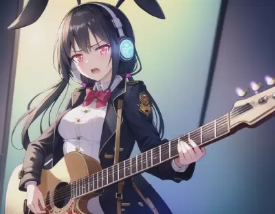 (best illustration:1.2),(best shadow:1.0),(best quality:1.3),(extremely detailed CG unity 8k:1.0),(contour deepening beautiful detailed glow:1.0),(detailed beautiful eyes beautiful detailed:1.0),(detailed beautiful face beautiful detailed :1.0),(cowboy shot:1.0),(full body:1.0),(detailed beautiful 5 finger beautiful detailed kekza:1.0),(solo:1.2),(teenage:1.0),(medium breast:1.0),(lolita:1.2),(1girl:1.0),(red eyes:1.0),(low twintails:1.0),(black hair:1.0),(anger vein:1.1),(open mouth:1.0),(rabbits ears:1.2),(rabbits tail:1.2),(medium Breasts:1.2),(military uniform:1.2) and (trench coat:1.2),(earphone:1.2),(guitar:1.2),(spoken musical note:1.0),(neon light:1.0),(bloom light:1.0),(neon lens flare:1.0),(gradient frame:1.0),(keyboard:1.0),(dark light:1.0),(blue shadow:1.0),(pink light:1.0),(screen:1.0),(galaxy:1.0),(neon butterfly:1.0),
