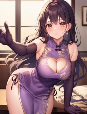 nsfw, best quality, highreso, 1girl, (dark purple long hair:1.1), brown eyes, sharp mature face,forward leaning posture, white aodai, see-through,( cleavage, cleavage cutout:1.1), elbow gloves, in gorgeous hotel,paizuri invitation, focus on cleavage, <lora:aodaimong:0.6>