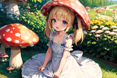 outdoors,tree,nature,coniferous forest,mushroom,mushroom picking,squatting, looking away,