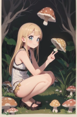 森で採取する金色の髪の少女